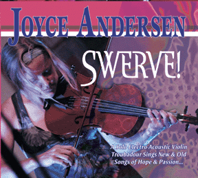 After nearly 20 years as a fiddle sideman and a singer-songwriter, playing in bluegrass, country, rock, celtic, jazz and folk ensembles, Joyce Andersen has gone into the woodshed for 2 years to create a new body of music and a new musical standard of what an unaccompanied fiddle troubadour can do. Her 5th solo CD, titled Swerve, features her new sound in 8 extended improvisational songs that embrace a dizzying range of musical styles, from jazz standards to fiddle tunes, gospel, ballads and blistering rock & roll.
