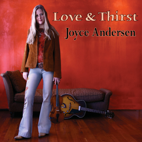 Joyscream Music announces the release of singer-songwriter-fiddler Joyce Andersen's 4th solo recording, "Love & Thirst." The CD features her songwriting and voice on center stage, and she contributes 11 new original songs to the 60-minute album, with one traditional song and one cover. Andersen arranged and produced the songs on the album, and has taken command of her art with a strong and steady hand, forging an unmistakable musical presence and an immediately recognizable sound. Andersen has harnessed a formidable rhythm section in Dave Mattacks (drums & percussion) and John Troy (bass) to help her deliver this powerful set of songs. Mattacks is known for his work with Fairport Convention, Richard Thompson & Mary Chapin Carpenter, and Troy, a founding member of the legendary Poussette-Dart Band has been a well-known figure in the New England music scene for many years. They provide a rock-solid but understated rhythm section. Also contributing on the CD are Duke Levine (guitars & mandola), Bruce Derr (pedal steel), Rick Watson (piano), Pete Huttlinger (guitar) and Harvey Reid (guitar & lap steel). Andersen's confident vocals and sophisticated songs are the central focus of Love & Thirst, though she also shines with her stellar fiddle playing (check out the solo at the end of "Thirsty Girl") and her increasingly confident guitar work. She shows no signs of slowing the pace of her growth as a solo artist after years of recording sessions and side-gal work, and the lyrical and musical depth of her new material signal that she is a mature and grounded artist with a broad vision and a prolific pen. Joyce Andersen fans will find more of her trademark sound here, though she is obviously gaining momentum, with more energy and confidence than ever. "Love & Thirst" is sure to win her many new converts, with its crisp, clean, sparse and powerful sound, carrying her passionate message like a flag. Her upbeat but thoughtful songs like "Thirsty Girl" and "Misled" are catchy enough to be pop hits, yet her peace anthem "Filled With Love" and her moving cover of Eric Andersen's anti-war epic "For What Was Gained" (Eric says it's the best cover ever of one of his songs!)are powerful enough for any coffeehouse audience. Joyce Andersen is a shining example of the new breed of talented, confident women who are rewriting the rules of the music business and reaching across boundary lines to their audiences. She drinks deeply of life; she sings of love and loneliness, of peace and fellowship, with many nods to faith, desire, hope and beauty. She carries us upward and fills us with her musical vision, all the while reminding us the joys of feeling, loving and thirsting. |