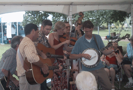 Every time I come home I see a big sign that says "Welcome to Maine...the way life should be." The world of music festivals is also the way life should be. Whether they're run by two people or a legion of thousands of volunteers, festivals, at their best, make me proud to be a human. Weekend-long Brigadoon-like towns materialize in fields, parks and campgrounds world-around, built up lovingly by old-timers and newcomers alike. Replete with neighborhoods, old-friends, open jam sessions, craft stores and restaurants, it's all in a spirit of slowing down & appreciating the good things in life. My two favorite festivals this past summer were the Sioux River Folk Festival and the Philadelphia Folk Festival. Sioux River doesn't want to get any bigger. It thrills me that these South Dakotans, the embodiment of the pioneer spirit, realize that bigger isnÕt always better. It's the same way IÕm thrilled to see a "gone fishing" sign on the hardware store door (hey, if you can't get the right nuts and bolts for your project that day, then you can go fishing, too!) The Philly Folk Fest, on the other hand has grown from a handful of volunteer staff, to a staff 2000 strong. There is a thrill in having the festival town be bigger than oneÕs hometown, too! And it seems like people are inspired to be extra good to each other in this town. Peace prevails in everybodyÕs mind.Deep