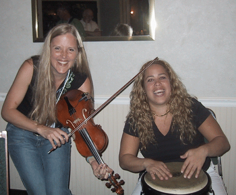 Just to quickly recap...Harvey helped me make my first solo CD in 2000 ("The Girl I Left Behind") which put me on the folk map( a very small dot, perhpas, but a dot nonetheless.) In 2001 we made a much acclaimed duo CD ("The Great Sad River.") In 2003 I put out my second solo CD ("Right Where I Should Be") which fueled some exciting success, and which (good for a girl's feeling of autonomy) Harvey Reid had very little to do with. So as Harvey and I settle into living happily ever after our minds reel trying to keep straight when we are running off to different gigs, and when we are running off to the same gig. At least I don't have to use that ambiguous word boyfriend now when I am accosted by young adoring folk hunks after my shows, or when I'm closing down the post festival jam session in the wee hours of the morning. Actually I'd love to get more young folks hunks and chicks out to see our shows. Folk music isn't boring!!!!! Historically, this is a good time to be starting the folk musician's journey. I have even had a few interesting independent record labels offers. I love the idea of having some help getting the music out there, but I just married Mr. DIY and I'm slowly catching on. I didn't change my name, though, so the juryÕs out on the"to sign or not to sign" question. I hope to see you out there! On to the rest of the newsletter...