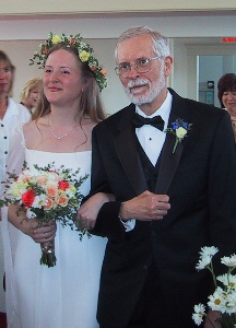 by Dad to "Here Comes the Bride" on a great organ with a Pagan goddess